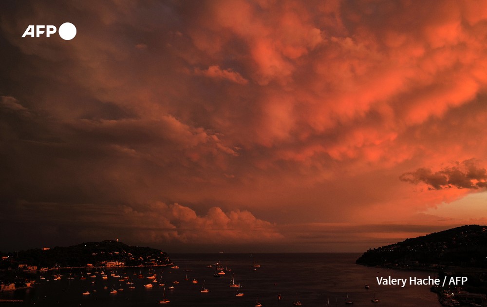 A photograph shows at sunset after the rains the bay of Villefranche-sur-Mer, on August 14, 2022.